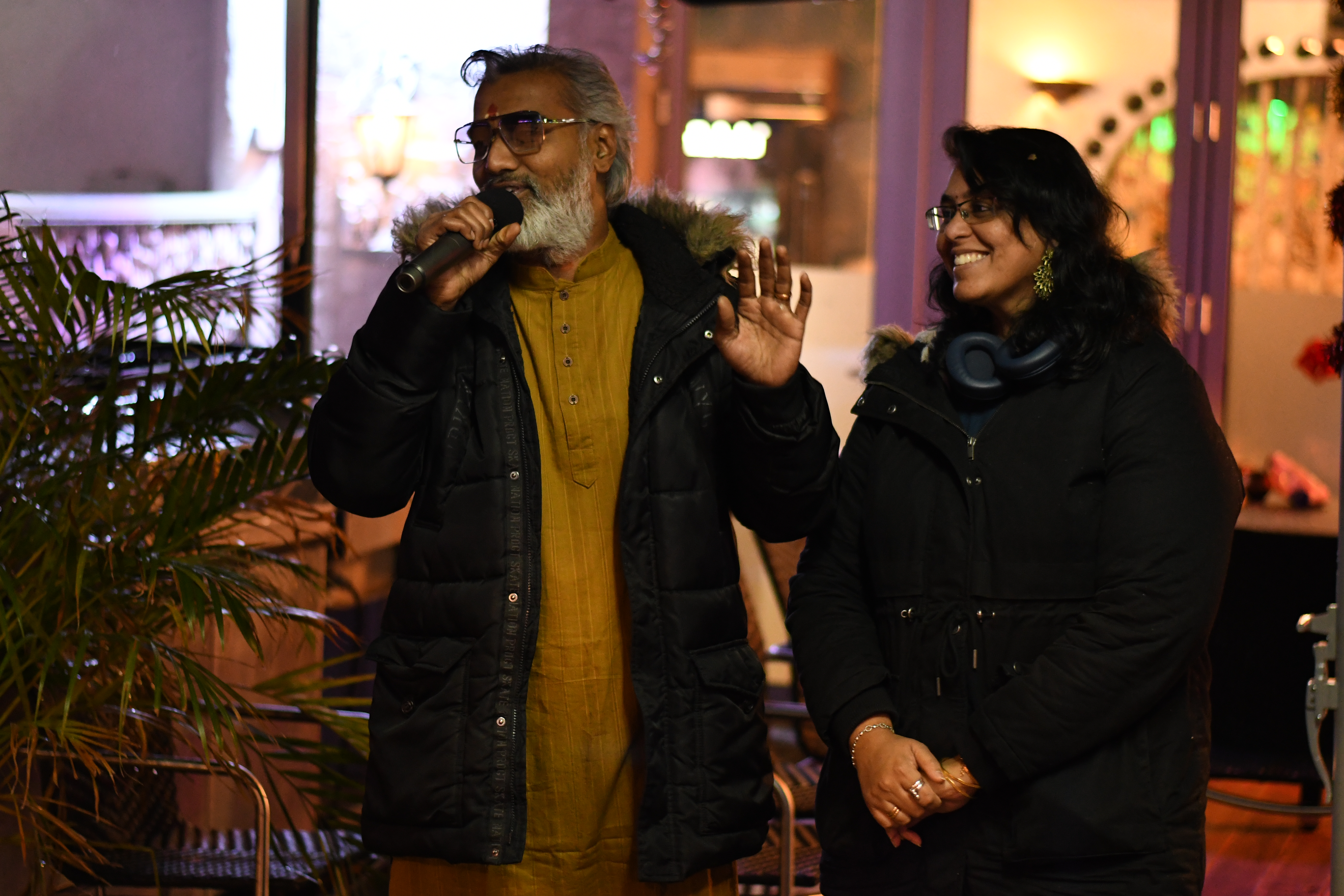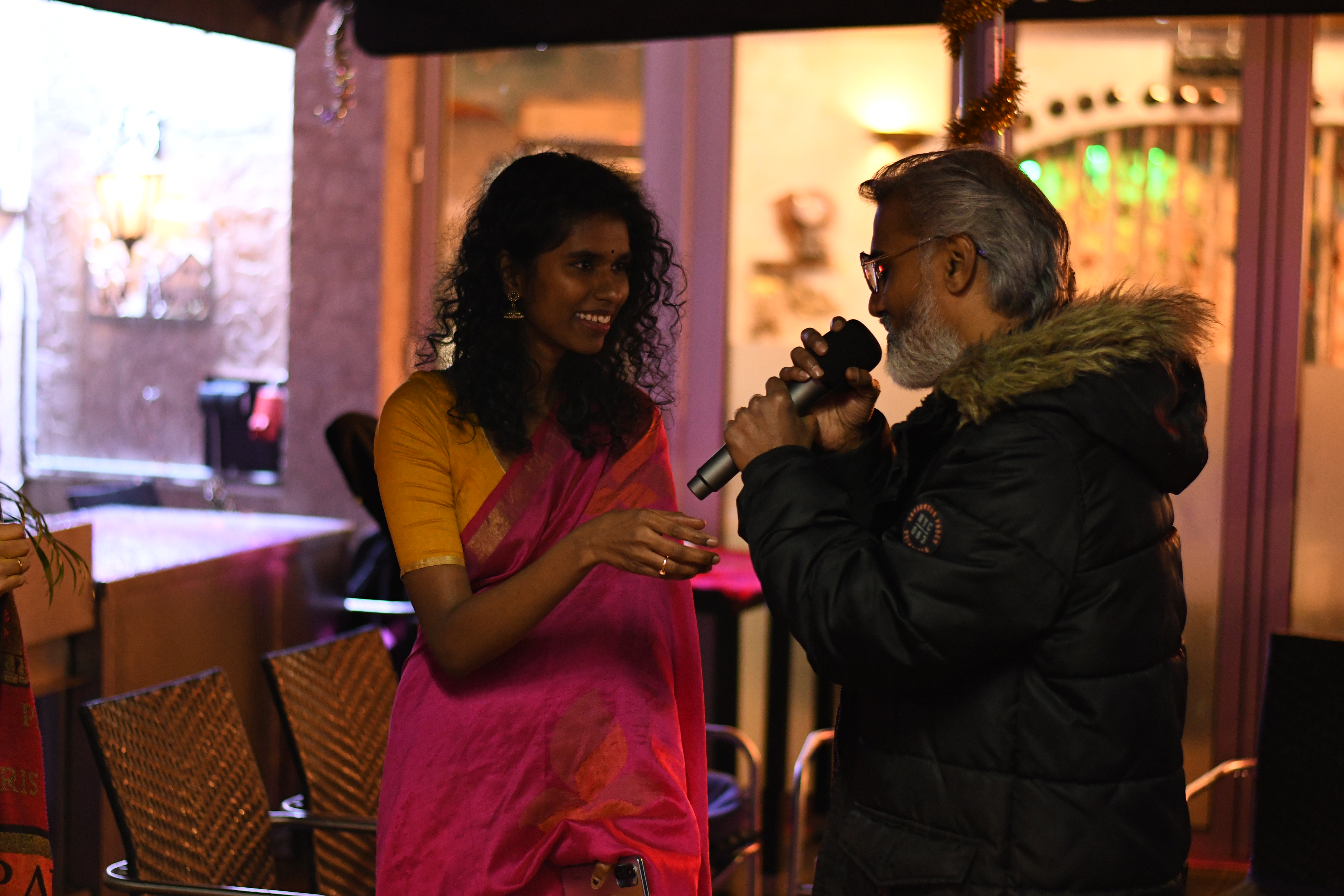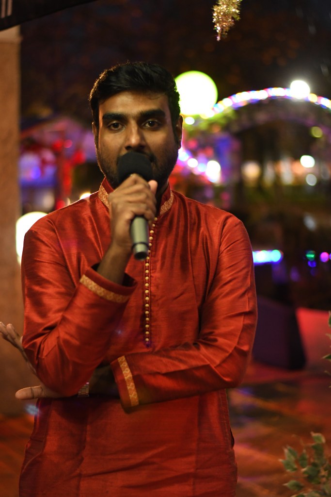 The weather report said it was going to be a cold, rainy night. Hence the show needed its power and passion where it was perfectly delivered by the hosts Rahul and Aparna. The whole night wouldn’t be the same if it wasn’t for their witty and funny improv. Their energy provided us the warmth to distract from the cold winds. From then, we have been welcomed to about our Guest of the event Ms. Hridi, a PhD aspirant of the Helmholtz Munich, who spoke her stories of studies. We were very enthralled to know about her adventures. We were also provided with another guest Ms. Pranathi who is an architectural artist. She expressed her fondness for art as much as we adore our love for Deepavali.